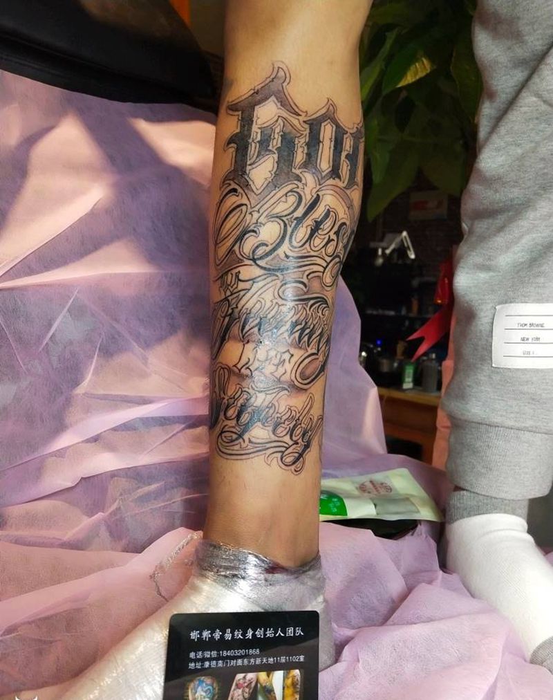 当前位置: 首页 >河北省邯郸市纹身店-帝易纹身总师父店纹身图案>奇卡诺字体纹身图片_腿部花体字纹身图案