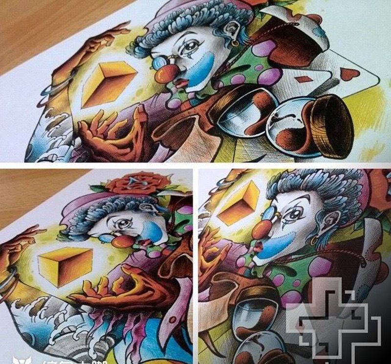 当前位置: 首页 >河北省保定市纹身店-蝉鸣刺青工作室纹身图案>小丑纹身图片_手稿胸部腰部背部手臂腿部欧美人物原创纹身图案
