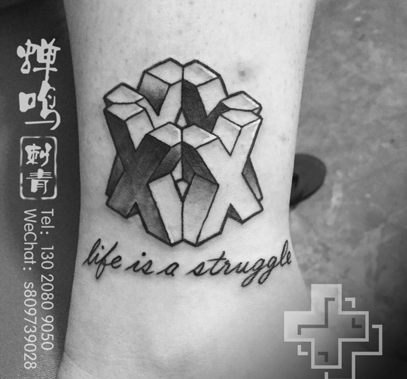 XXXX纹身图片_成品腿部清新几何字符纹身图案