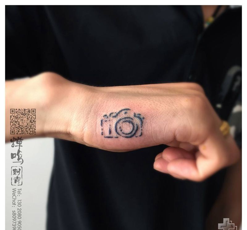 当前位置: 首页 >河北省保定市纹身店-蝉鸣刺青工作室纹身图案>相机纹身图片_成品手臂手部清新图腾纹身图案