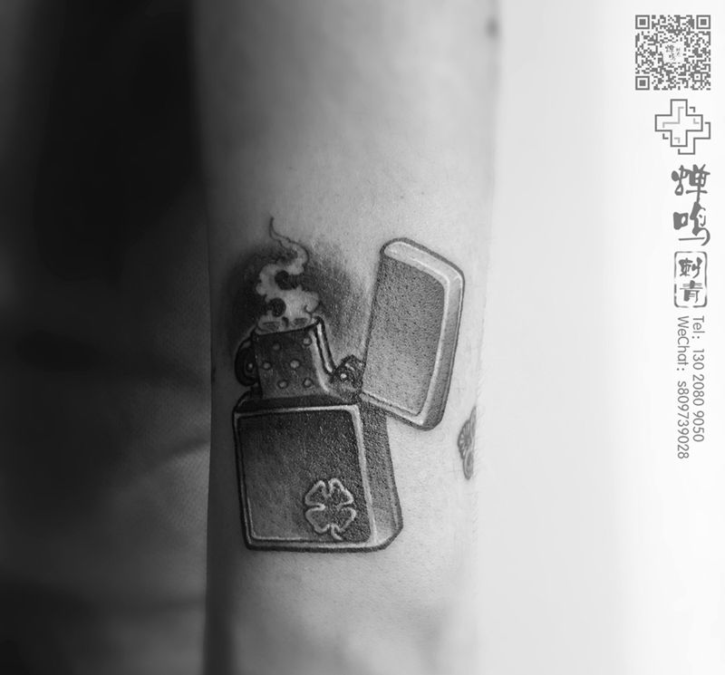 当前位置: 首页 >河北省保定市纹身店-蝉鸣刺青工作室纹身图案>Zippo纹身图片_成品手臂欧美写实静物原创纹身图案