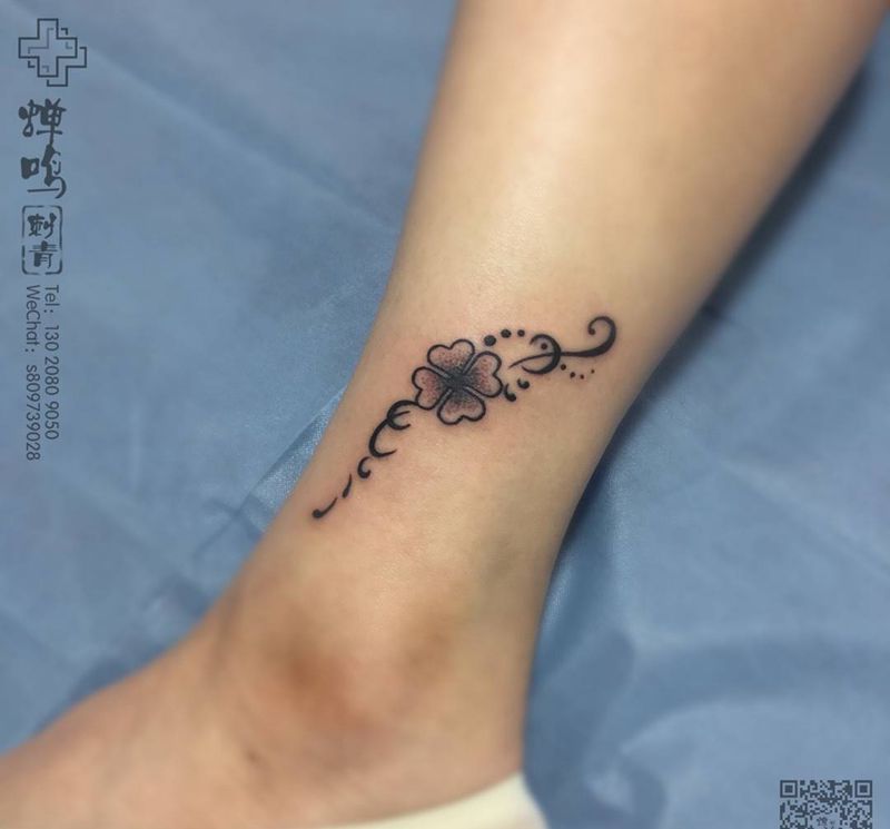 当前位置: 首页 >河北省保定市纹身店-蝉鸣刺青工作室纹身图案>四叶草纹身图片_成品腿部清新植物图腾纹身图案