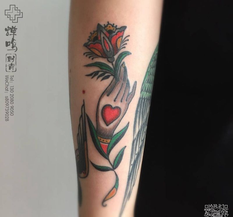 当前位置: 首页 >河北省保定市纹身店-蝉鸣刺青工作室纹身图案>old school小花纹身图片_成品手臂欧美清新动物静物纹身图案