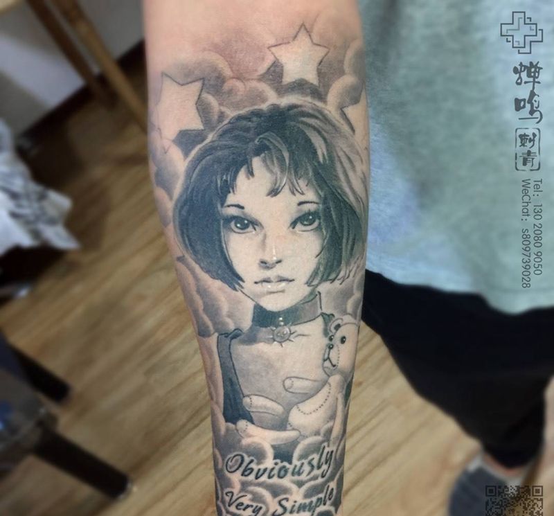 当前位置: 首页 >河北省保定市纹身店-蝉鸣刺青工作室纹身图案>杀手里昂纹身图片_成品手臂欧美清新写实人物静物字符原创纹身图案