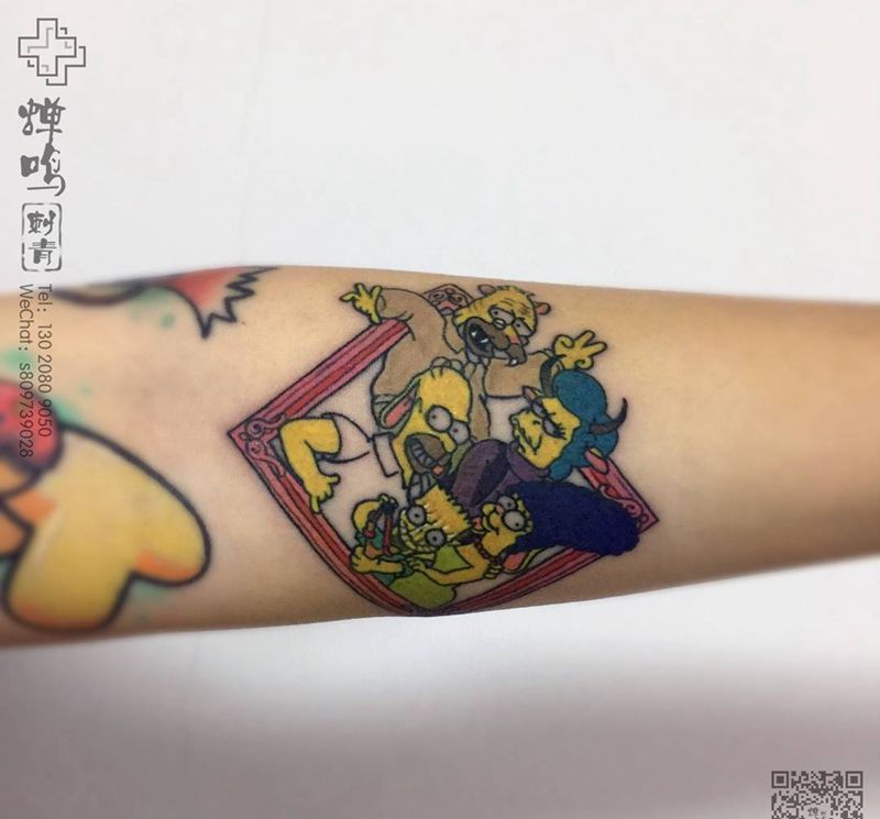 当前位置: 首页 >河北省保定市纹身店-蝉鸣刺青工作室纹身图案>辛普森纹身图片_手臂New School纹身图案