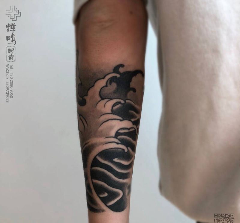 当前位置: 首页 >河北省保定市纹身店-蝉鸣刺青工作室纹身图案>海浪 团雾纹身图片_手臂老传统纹身图案