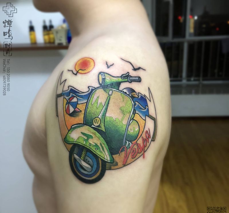 Vespa纹身图片_肩部Old SchoolNew School纹身图案
