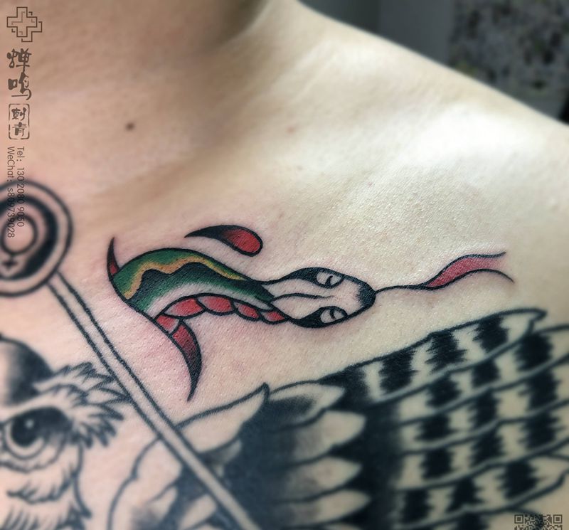 当前位置: 首页 >河北省保定市纹身店-蝉鸣刺青工作室纹身图案>穿膛蛇纹身图片_胸部Old School纹身图案