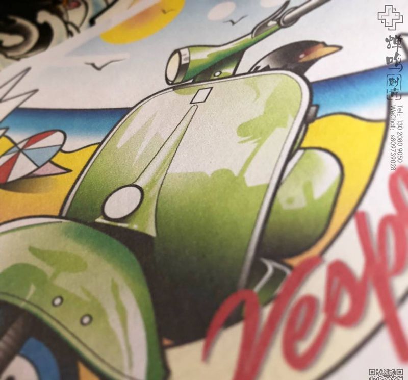 当前位置: 首页 >河北省保定市纹身店-蝉鸣刺青工作室纹身图案>Vespa纹身图片_New School纹身图案