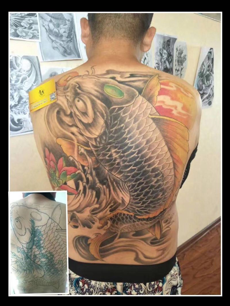当前位置: 首页 >河北省保定市纹身店-老A 刺青纹身图案>满背鱼纹身图片
