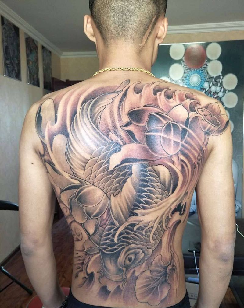 当前位置: 首页 >河北省保定市纹身店-老A 刺青纹身图案>满背鱼纹身图片