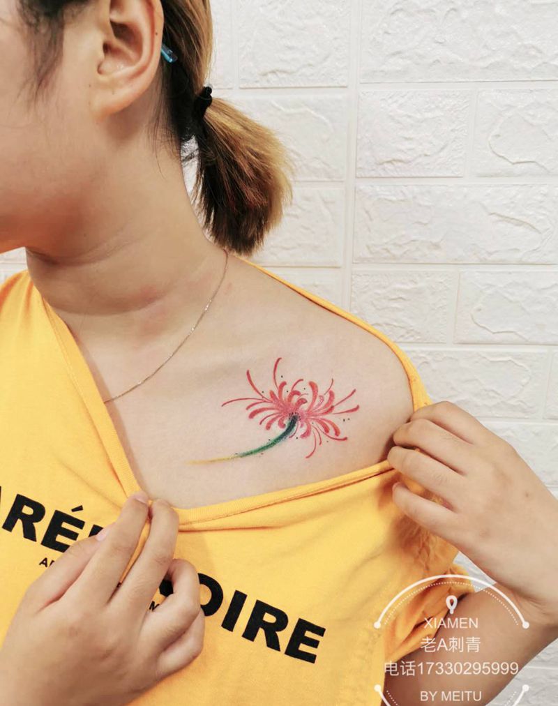 彼岸花纹身图片_肩部老传统纹身图案