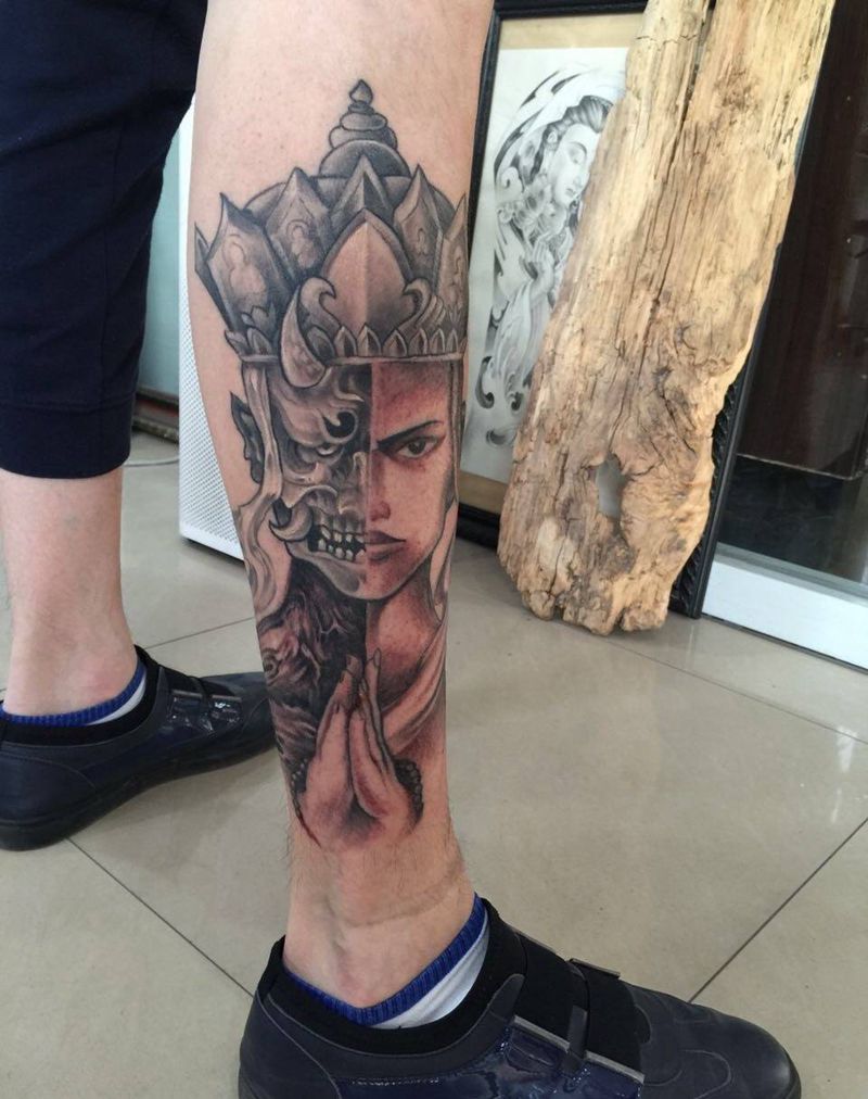 • T网红王老大花腿龙纹身图片_腿部新传统纹身图案