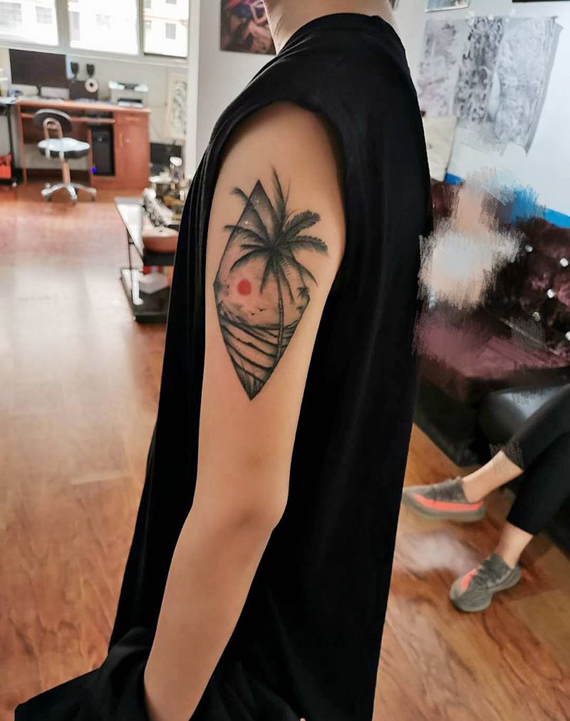 椰树纹身图片_手臂Old SchoolNew School椰树纹身图案