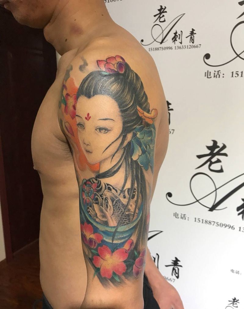 当前位置: 首页 >河北省保定市纹身店-老A 刺青纹身图案>荷花艺妓纹身图片