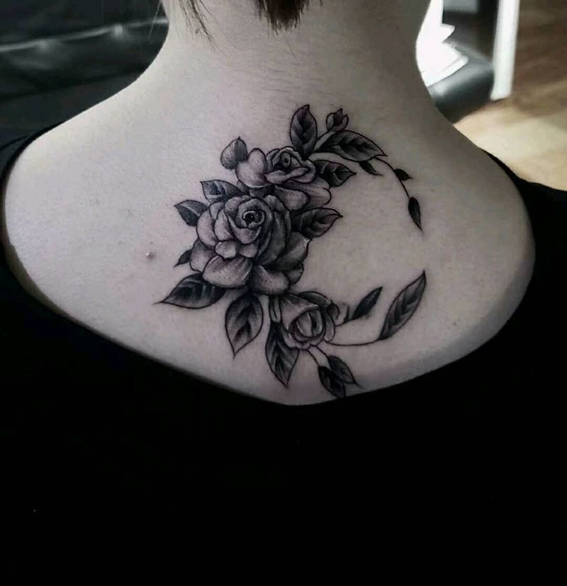 素花纹身图片_颈部新传统素花纹身图案