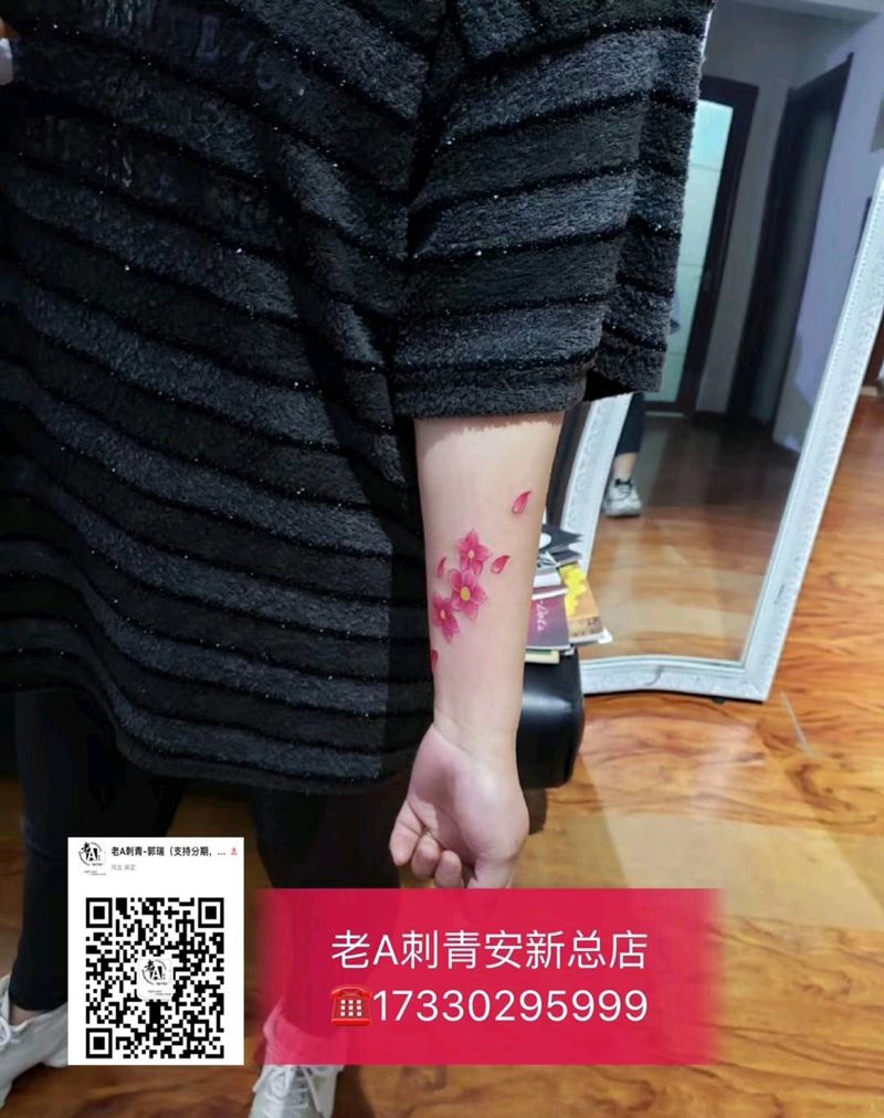 当前位置: 首页 >河北省保定市纹身店-老A 刺青纹身图案>樱花纹身图片_手臂新传统老传统纹身图案