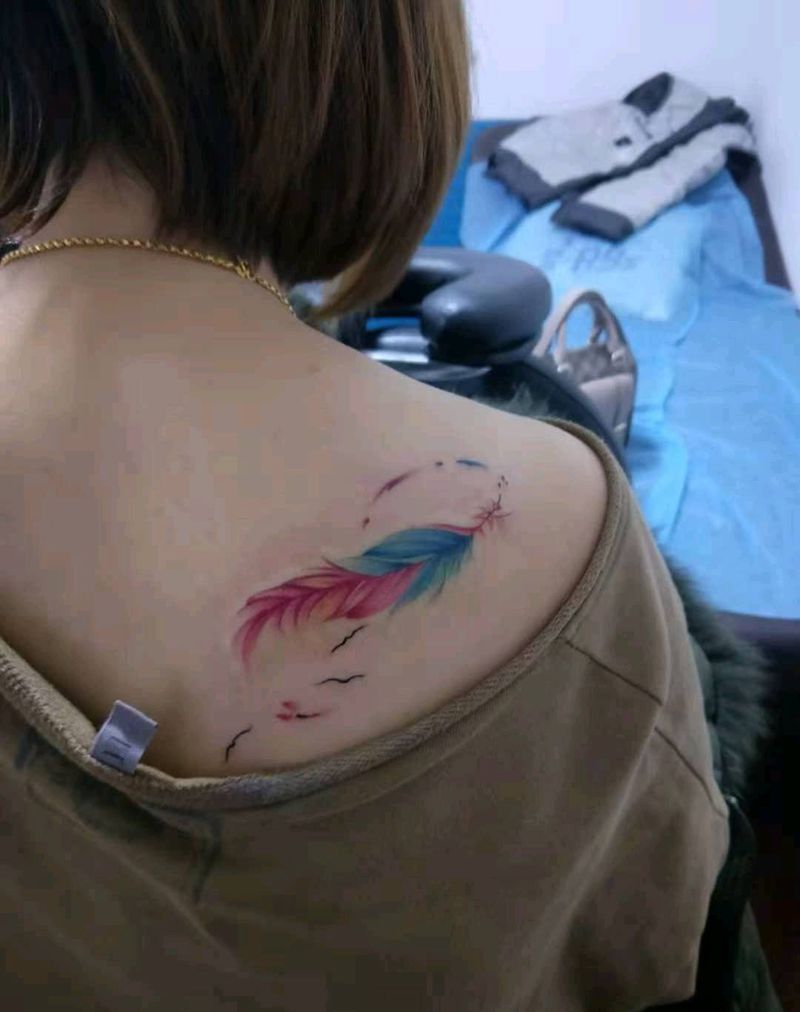 羽毛纹身图片_肩部新传统纹身图案