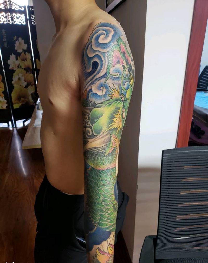 当前位置: 首页 >河北省保定市纹身店-老A 刺青纹身图案>花臂龙纹身图片_手臂老传统纹身图案