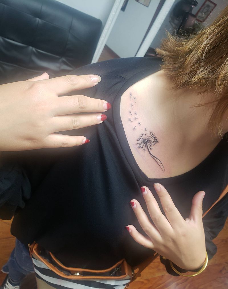 蒲公英纹身图片_胸部老传统蒲公英纹身图案