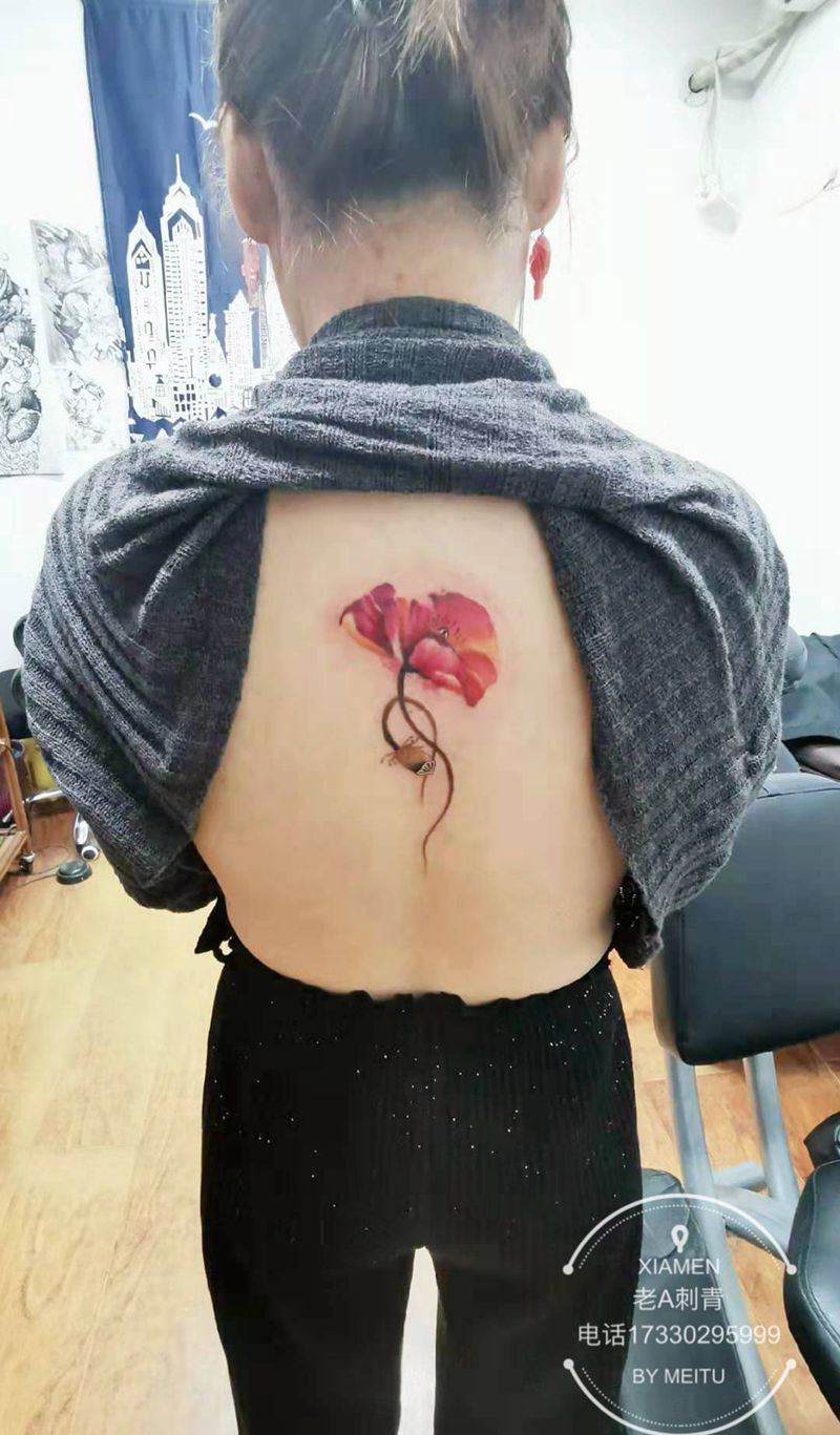 罂粟花纹身图片_背部老传统新传统纹身图案