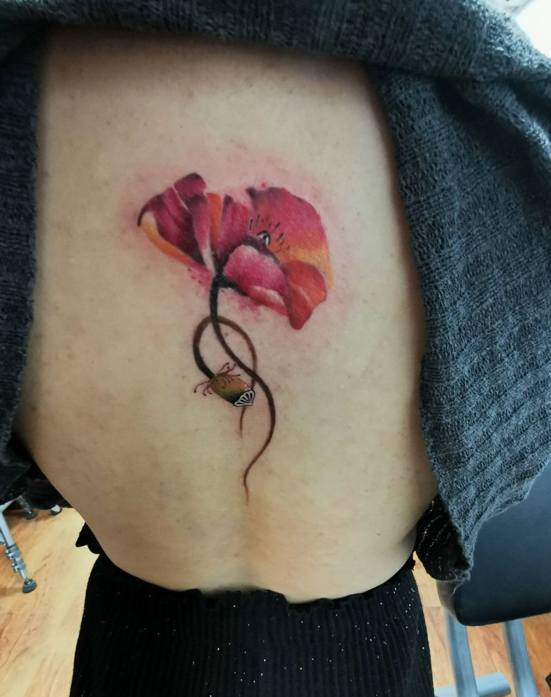 罂粟花纹身图片_背部老传统新传统纹身图案