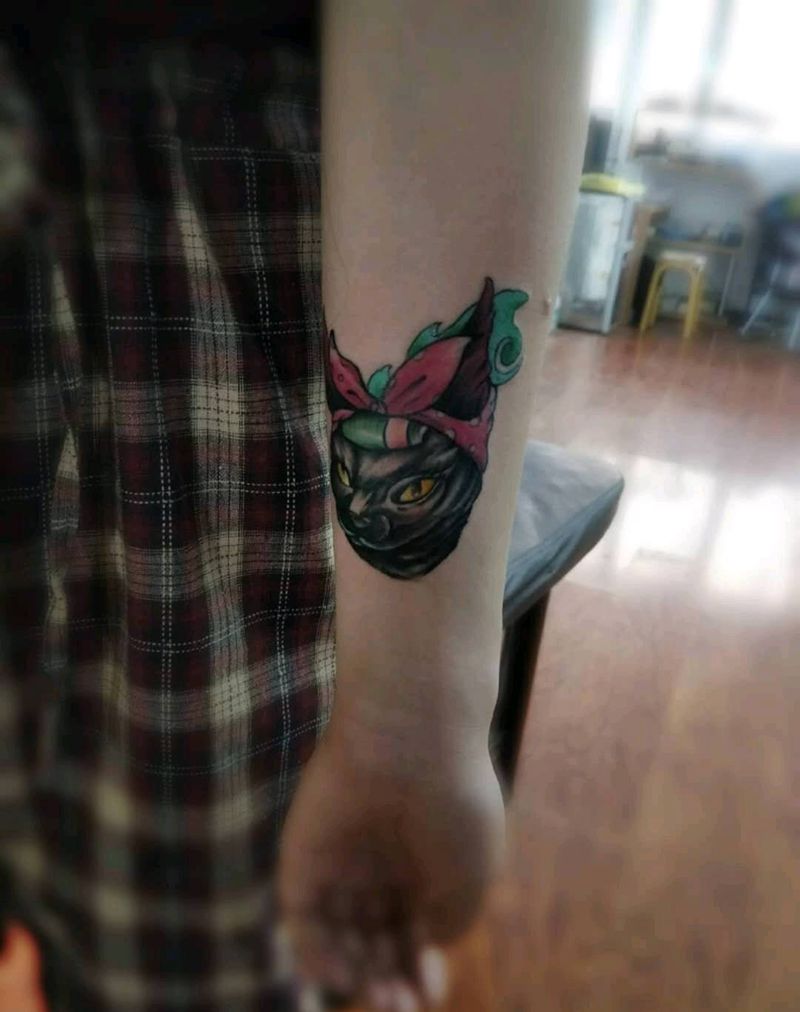 当前位置: 首页 >河北省保定市纹身店-老A 刺青纹身图案>猫遮盖纹身图片_手臂Old School纹身图案
