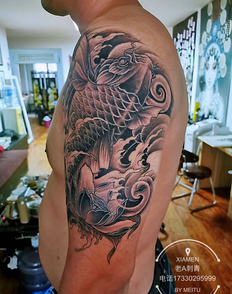 当前位置: 首页 >河北省保定市纹身店-老A 刺青纹身图案>鱼纹身图片_肩部老传统纹身图案