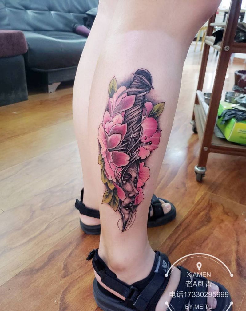 • T网红王老大花腿龙纹身图片_腿部新传统纹身图案