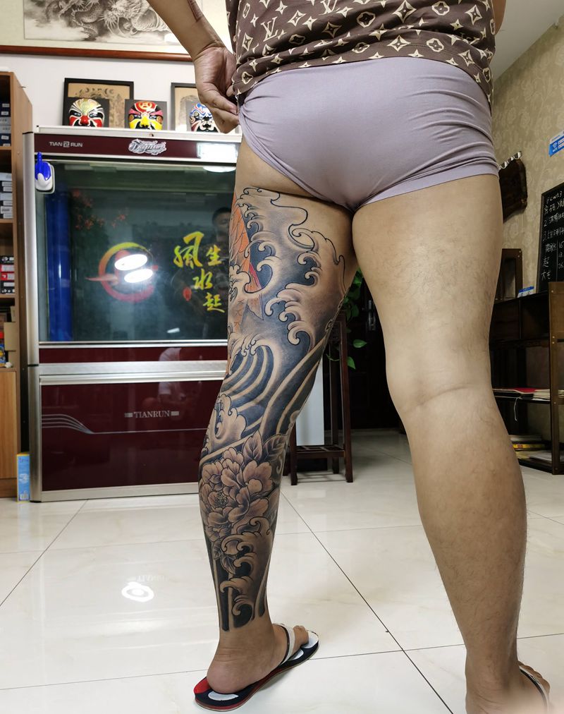 • T网红王老大花腿龙纹身图片_腿部新传统纹身图案