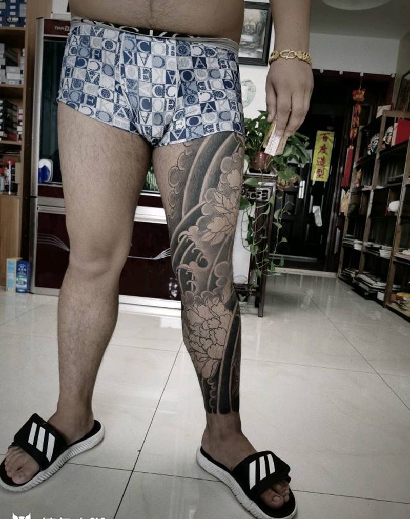 • T网红王老大花腿龙纹身图片_腿部新传统纹身图案