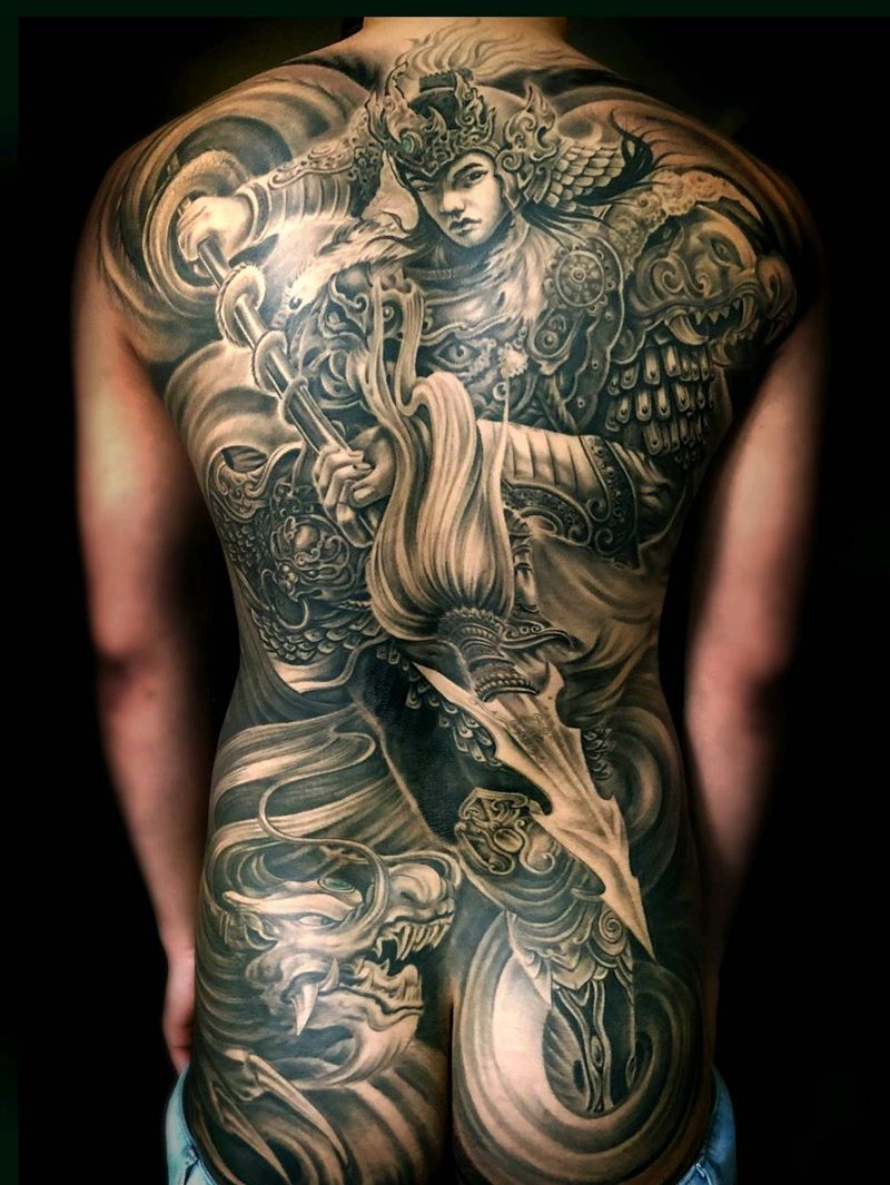 黑灰满背纹身图案
