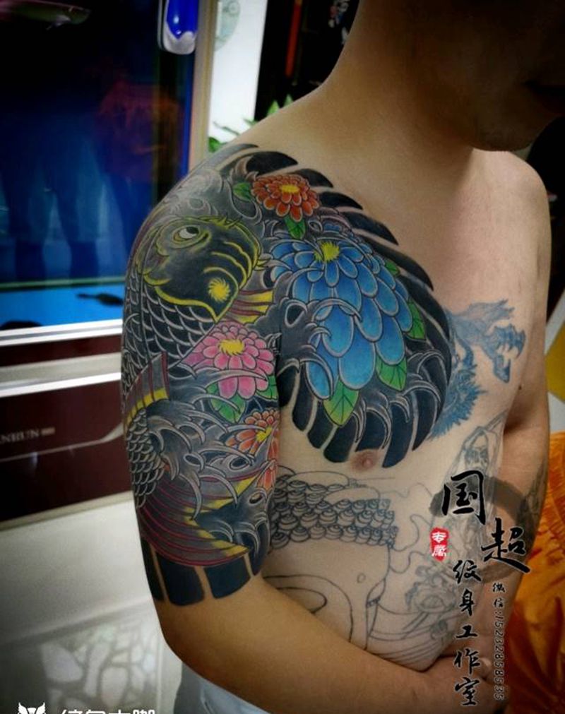 当前位置: 首页 >河北省邯郸市纹身店-国超纹身纹身图案>半甲纹身图片_肩部胸部老传统纹身图案