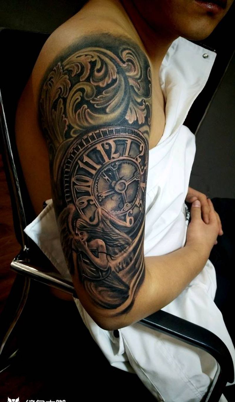 当前位置: 首页 >河北省邯郸市纹身店-国超纹身纹身图案>欧美风格 钟表纹身图片_手臂欧美写实纹身图案