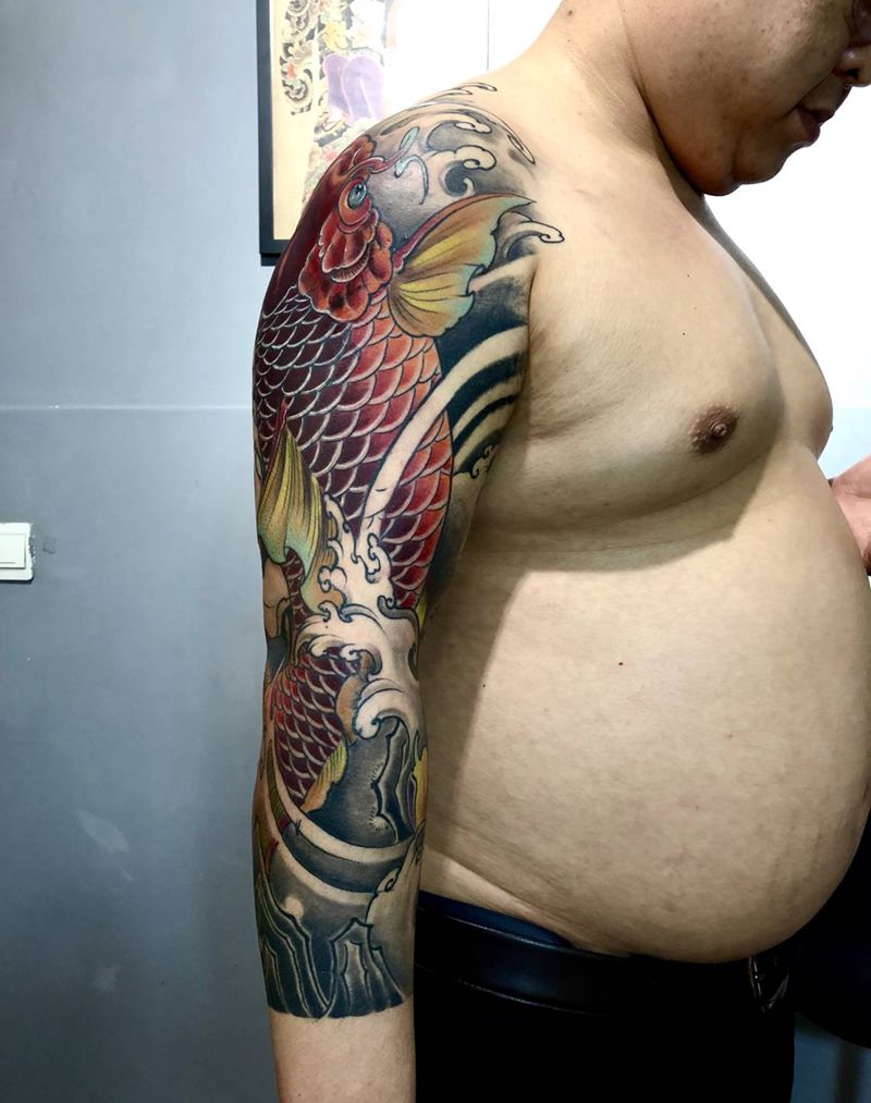半成品纹身图片_肩部臀部新传统鱼纹身图案