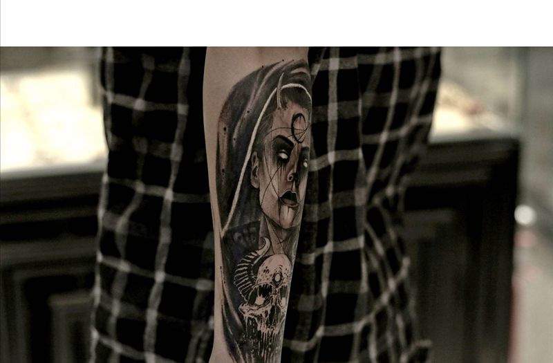 当前位置: 首页 >河北省保定市纹身店-魔罗阁刺青潮店纹身图案>暗黑风格原创设计纹身图片_手臂纹身图案