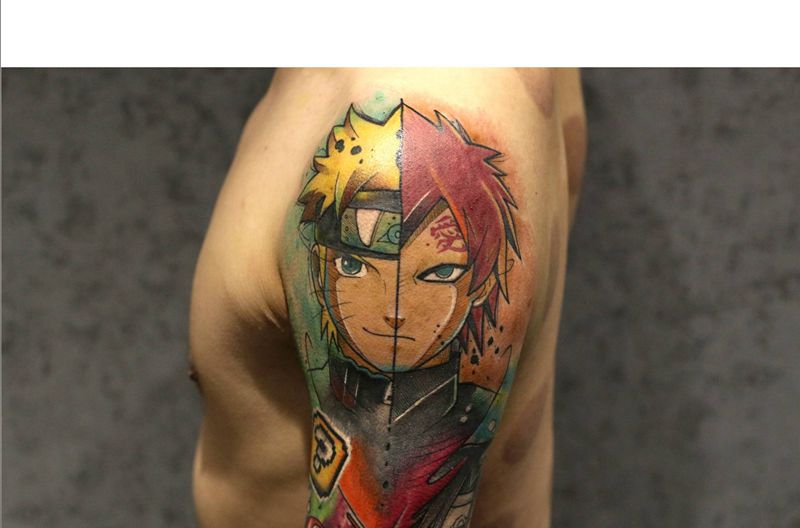 动漫花臂 3次完成纹身图片_手臂New School水彩纹身图案