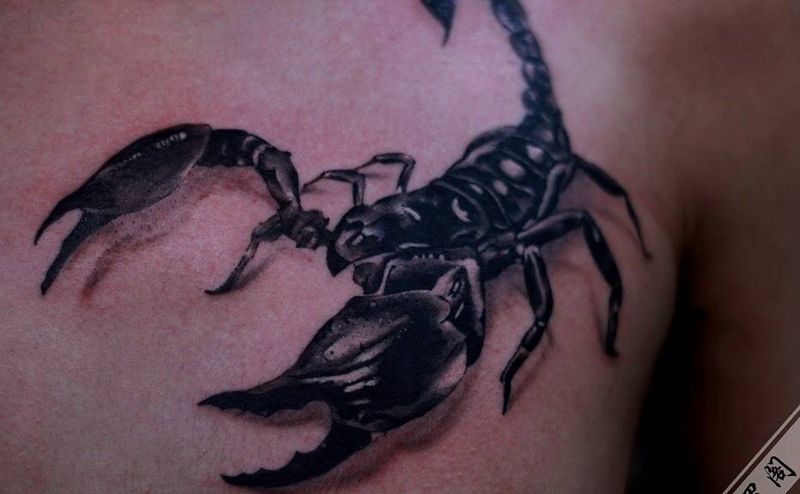 当前位置: 首页 >河北省保定市纹身店-魔罗阁刺青潮店纹身图案>3D超写实蝎子纹身图片_成品胸部欧美写实动物纹身图案