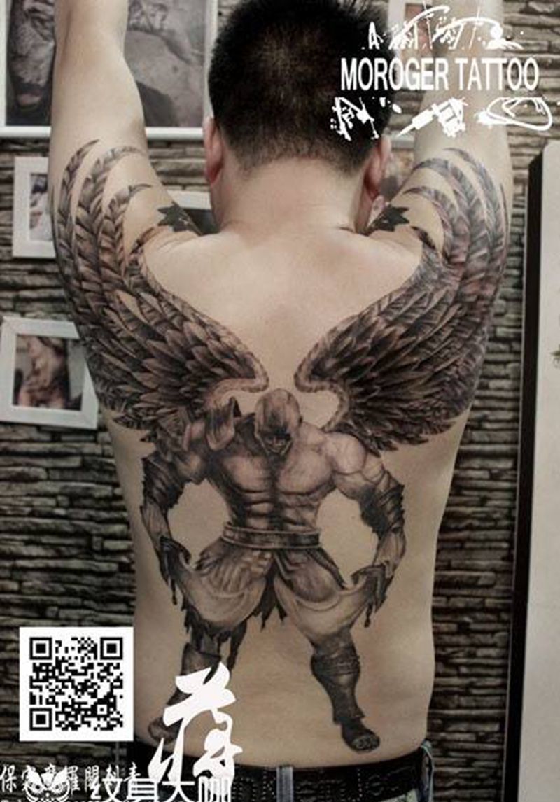 战神奎爷纹身图片_成品背部写实欧美肖像原创鬼神人物3D宗教纹身图案