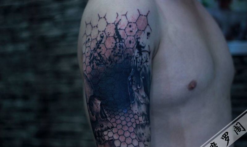 • 纹身吧推荐的披肩图腾半胛纹身图案作品展示