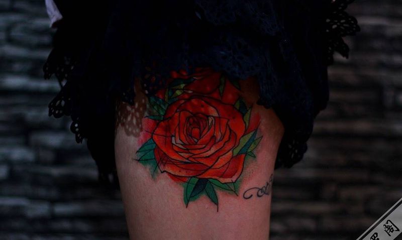• T网红王老大花腿龙纹身图片_腿部新传统纹身图案