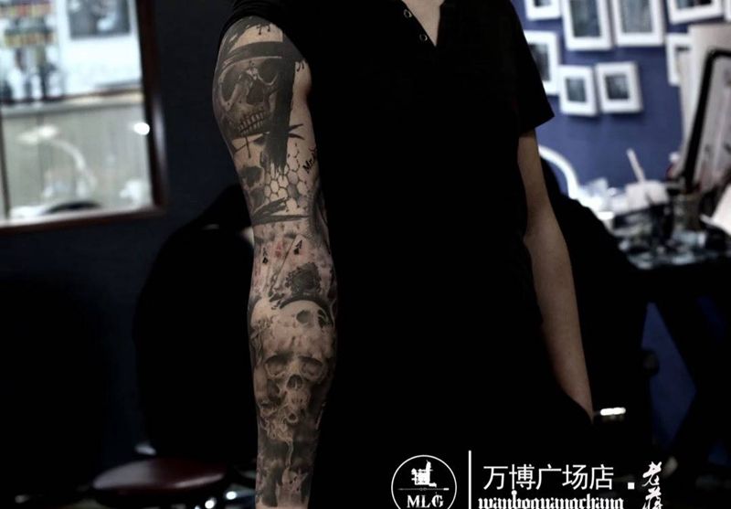 当前位置: 首页 >河北省保定市纹身店-魔罗阁刺青潮店纹身图案>欧美死亡花臂纹身图片_成品手臂欧美写实肖像贴纸宗教原创人物植物纹身图案