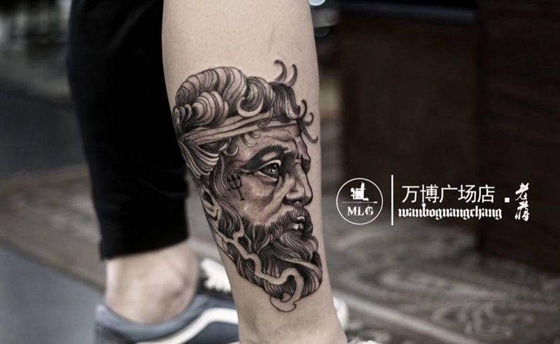 • T网红王老大花腿龙纹身图片_腿部新传统纹身图案