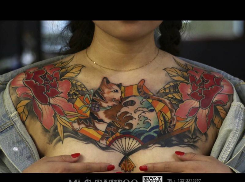 • 女性大花胸纹身_43张霸气漂亮的女性大花胸纹身图案作品