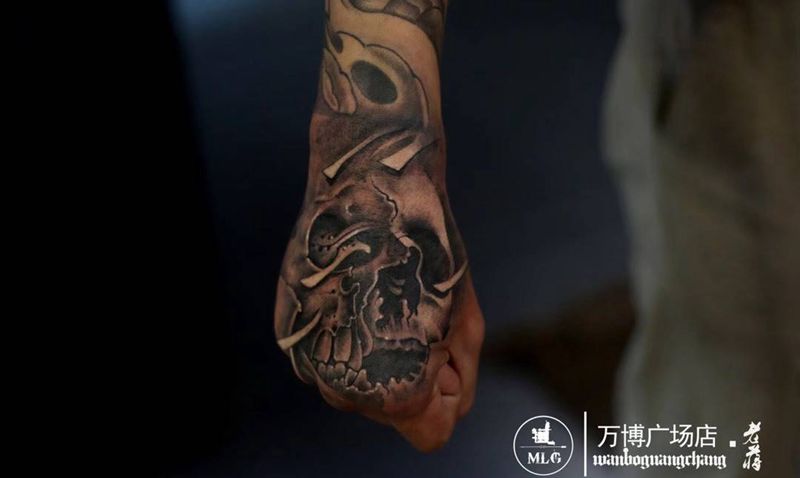 当前位置: 首页 >河北省保定市纹身店-魔罗阁刺青潮店纹身图案>死亡骷髅纹身图片_成品手部欧美写实人物鬼神纹身图案