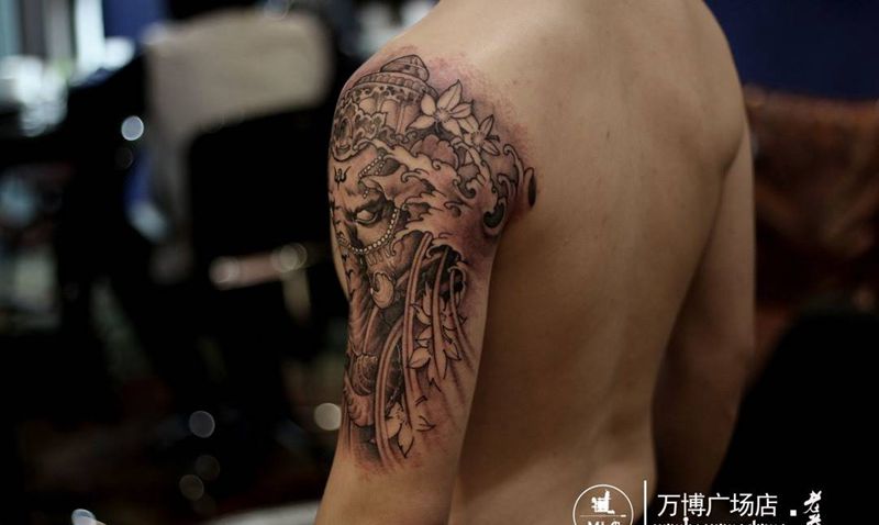 当前位置: 首页 >河北省保定市纹身店-魔罗阁刺青潮店纹身图案>大臂象神纹身图片_成品手臂传统动物宗教鬼神纹身图案