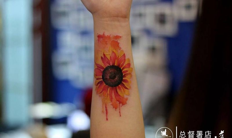 水彩晕染纹身图片_成品肩部手臂手部欧美清新动物植物晕染水彩纹身图案