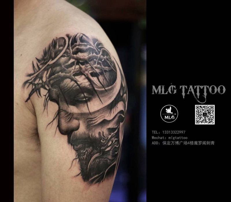 当前位置: 首页 >河北省保定市纹身店-魔罗阁刺青潮店纹身图案>大臂耶稣纹身图片