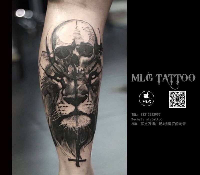 当前位置: 首页 >河北省保定市纹身店-魔罗阁刺青潮店纹身图案>小腿狮子