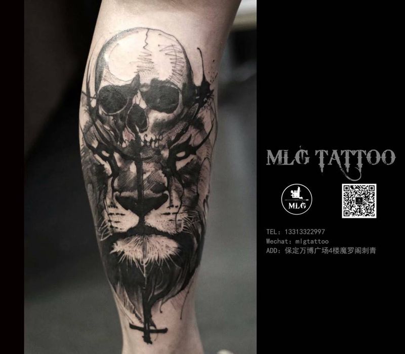 当前位置: 首页 >河北省保定市纹身店-魔罗阁刺青潮店纹身图案>小腿狮子